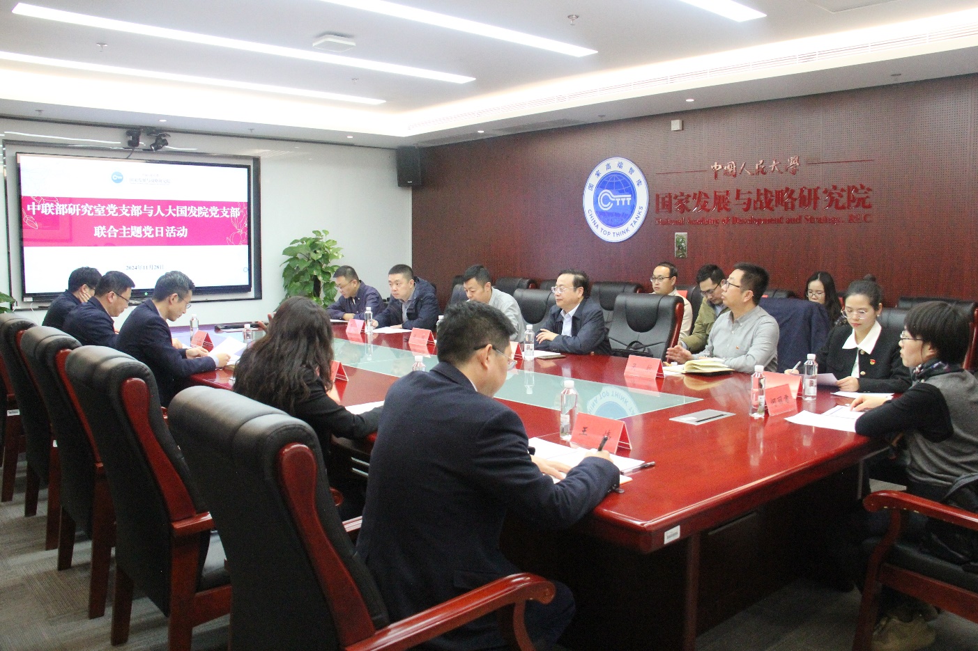 学校政策研究室相关领导和同志,国发院领导班子成员、党支部成员、部分研究员代表参会。