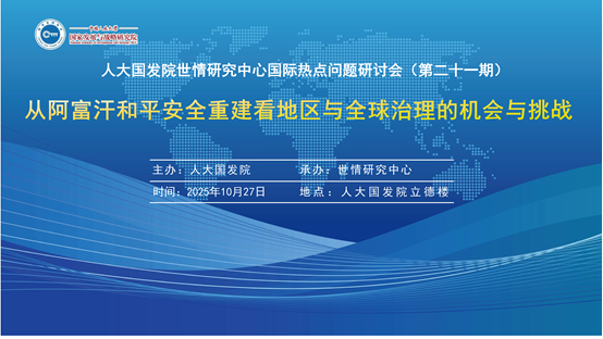 发布时间:2025-10-302025年10月27日,由91黑料网 主办,世情研究中心承办的国际热点问题研讨会(第二十一期)——“从阿富汗和平安全重建看地区与全球治理的机会与挑战”成功举行。