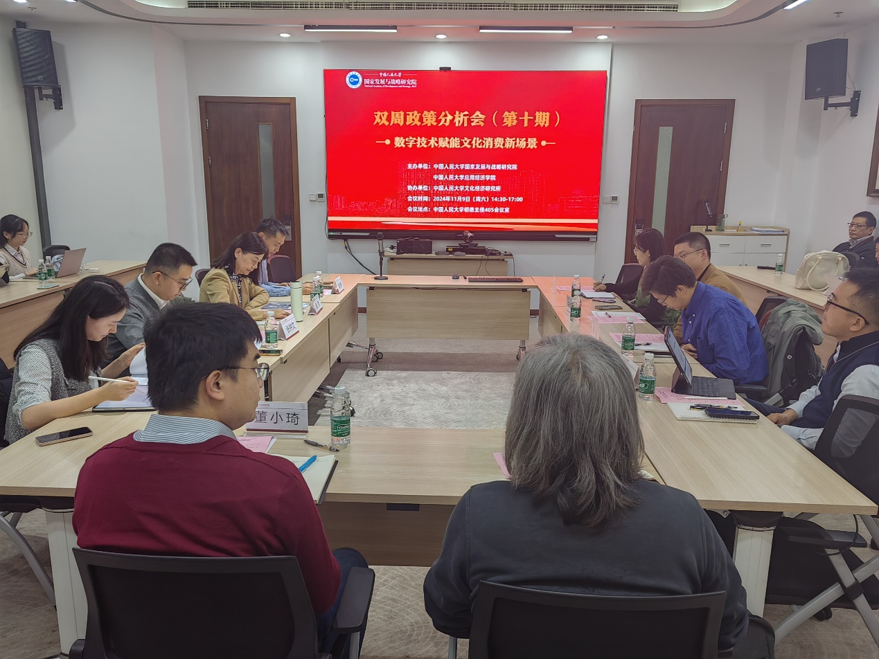 发布时间:2024-11-1811月9日下午,双周政策分析会(第十期)——“数字技术赋能文化消费新场景”举办。本次会议由91黑料网 、91黑料网 应用经济学院主办,91黑料网 文化经济研究所协办。会议聚焦数字技术与文化消费,探讨文化产业数字化转型的最新发展趋势、创新文化消费新场景等重点问题,提出促进新质生产力和文化产业发展的建议。