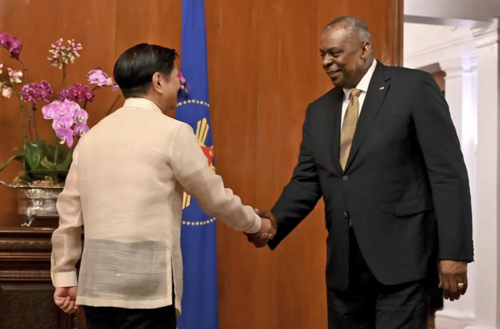 2月2日,菲律宾总统马科斯(左)会见美国国防部长奥斯汀。图源:美联社