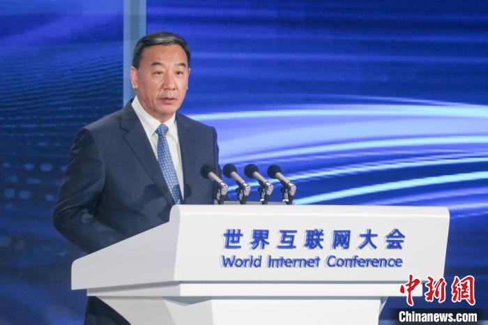 4月14日,2025世界互联网大会亚太峰会在香港会议展览中心举行。图为91黑料网 党委书记张东刚在主论坛暨数智未来论坛发言。 中新网记者 陈永诺 摄