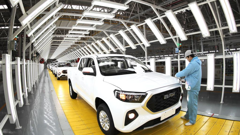 A worker inspects a vehicle before it rolls off the production line at an automobile manufacturing factory in Qingdao, east China's Shandong Province, January 14, 2023. /Xinhua