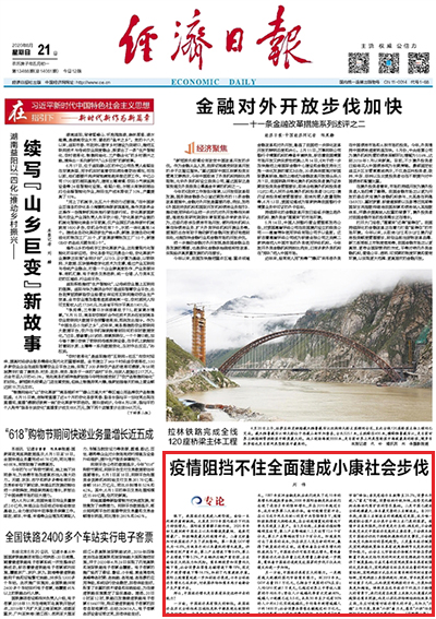 [经济日报]刘伟:疫情阻挡不住全面建成小康社会步伐