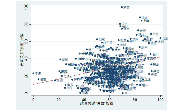 三、 中国城市政商关系亲近指数和清白指数分析
