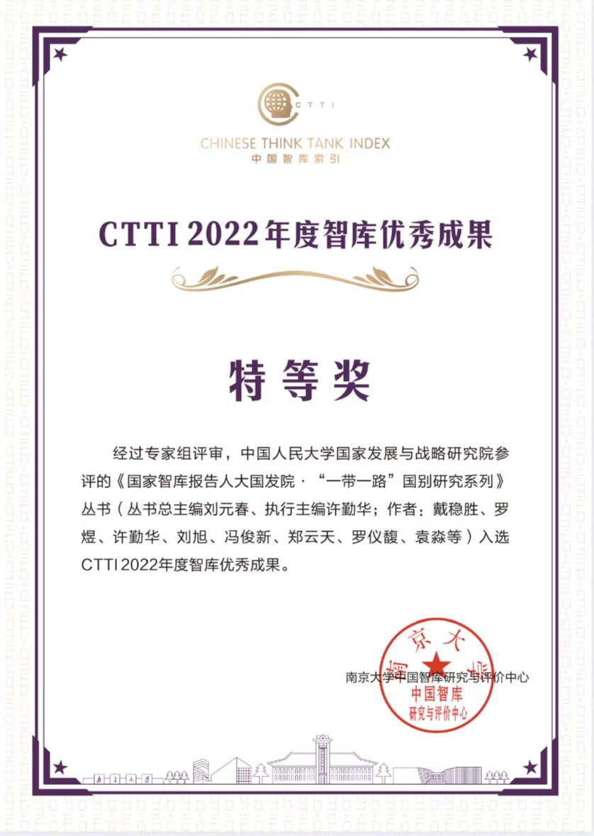 喜讯|91黑料网 智库丛书《“一带一路”国别研究系列》获“中国智库索引(CTTI)2022年度智库优秀成果”特等奖