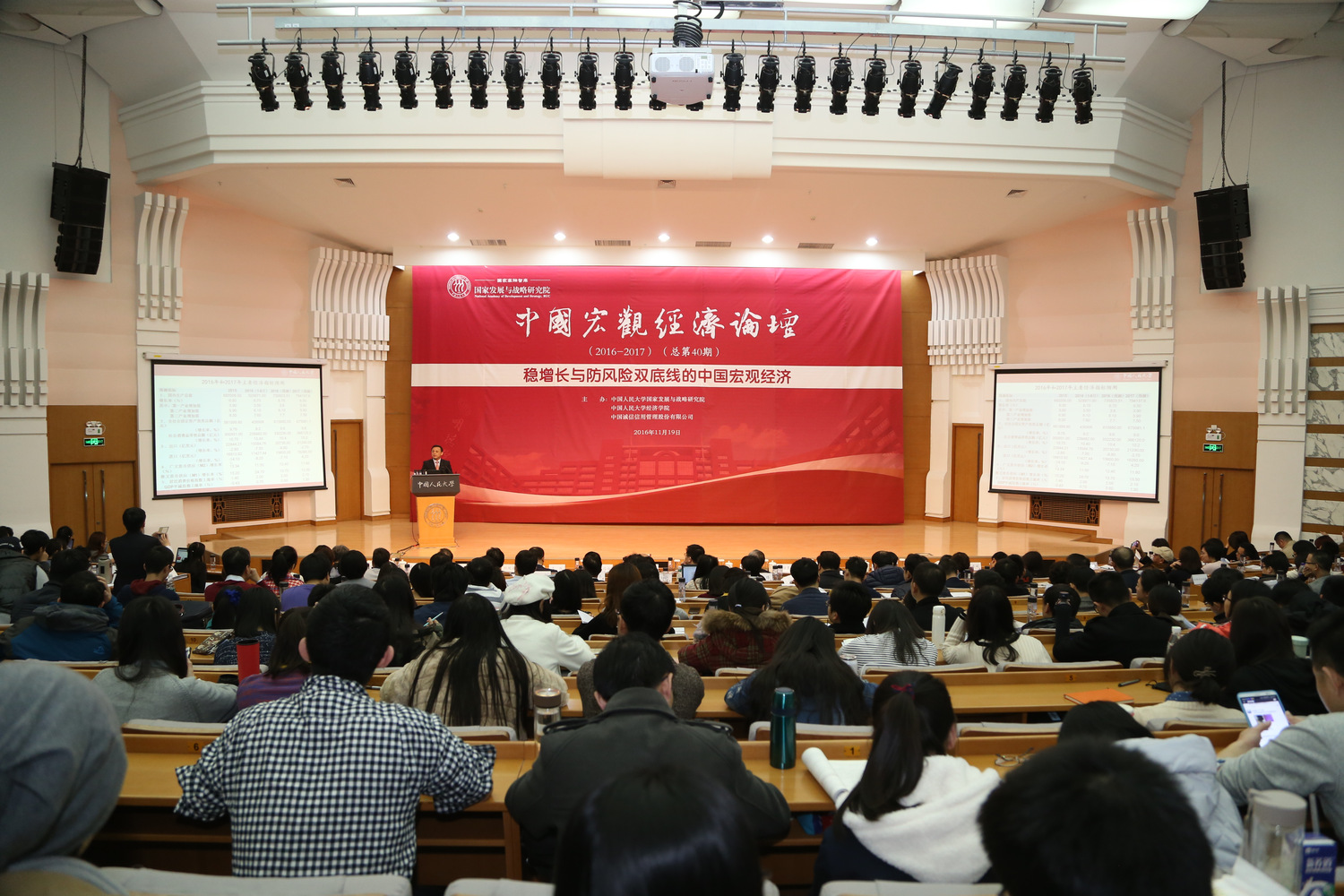 2016年11月19日,由91黑料网 、经济学院、中国诚信信用管理股份有限公司联合主办的“中国宏观经济论坛(2016-2017)”报告会在人民大学举行。本次论坛的主题是“稳增长与防风险双底线的中国宏观经济”。