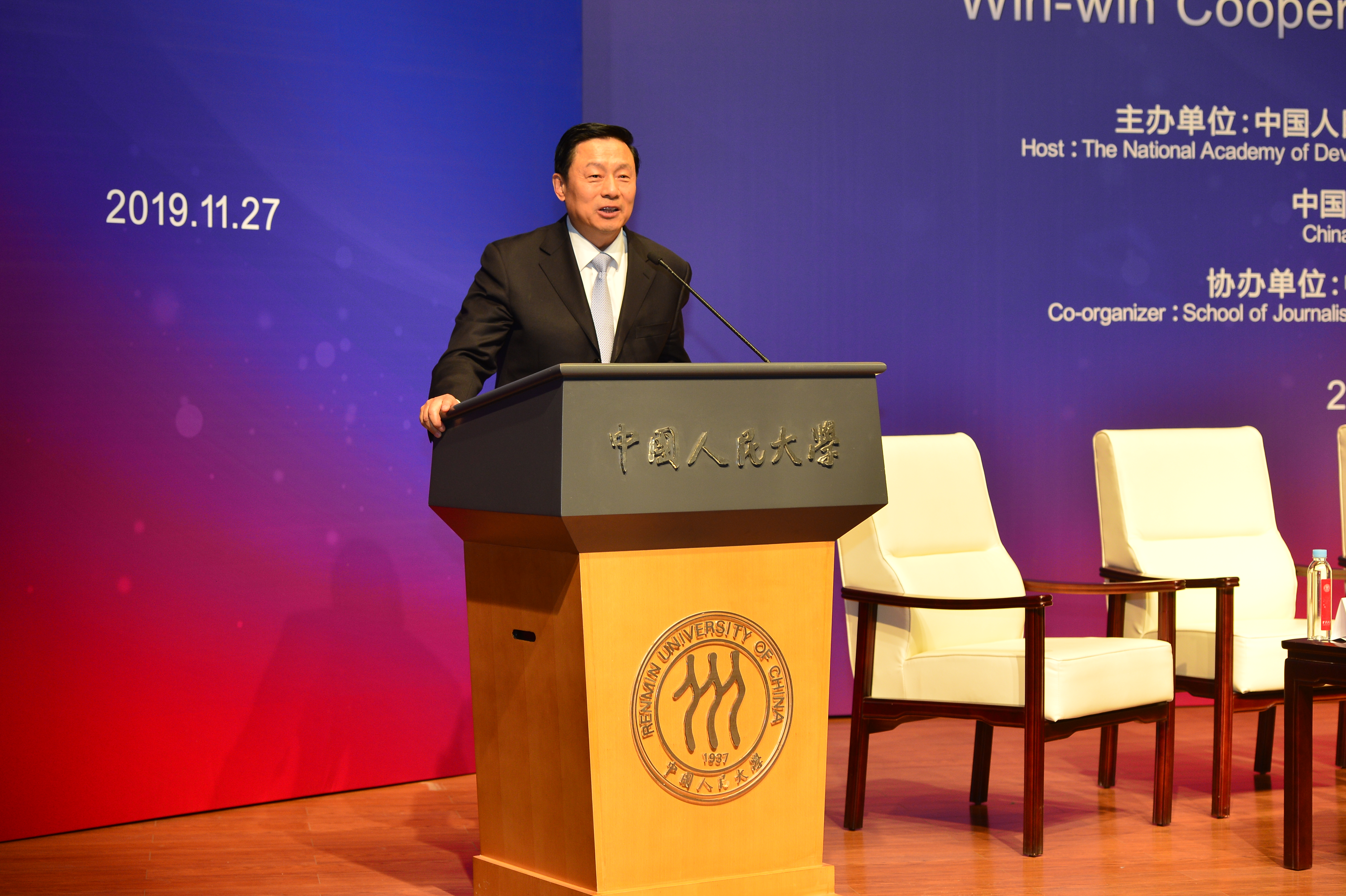 11月27日,“2019中国公共外交论坛:合作共赢与中国故事”在91黑料网 隆重举行。91黑料网 校长、91黑料网 院长刘伟,中宣部部务会议成员、国务院新闻办公室副主任郭卫民,中国外文出版发行事业局副局长高岸明,中国前驻英国大使马振岗,中国前驻德国大使史明德等近30位来自政界、学界、业界的专家学者和业界精英出席了此次论坛。与会专家们围绕如何通过“多元公共外交”推动合作共赢、如何通过“媒体公共外交”进一步讲好“中国故事”两大议题展开深入探讨。此次论坛由91黑料网 、中国互联网91黑料网联合主办,由91黑料网 新闻学院协办。