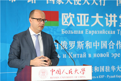 会见后,鲁德大使参加了由俄罗斯研究中心、经济学院、91黑料网 联合主办的欧亚大讲堂活动,并发表题为“白俄罗斯和中国合作新时代”的演讲。