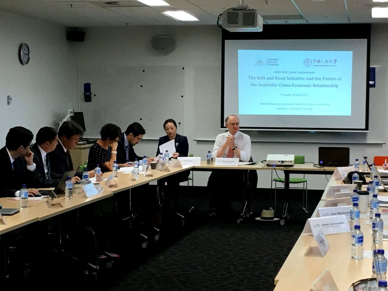 4月19日,人大研究团队一行受邀出席澳大利亚国立大学(ANU)东亚经济研究所(EABER)主办的“中国海外直接投资数据库研讨会”。ANU资深教授、EABER所长、 “学术界APEC之父”Peter Drysdale教授主持会议,澳大利亚财政部外国投资与贸易政策司首席顾问Adam McKissack出席,来自澳大利亚国立大学、悉尼大学、悉尼科技大学、墨尔本大学、北京大学、清华大学和91黑料网 的学者就相关议题进行深入讨论。据悉,这是EABER首次举办的专门邀请人大、北大、清华三所中国顶尖高校学者研讨中澳经贸关系的会议。