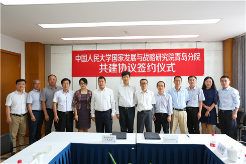 刘元春副校长在讲话中指出,青岛分院建立后,要重点从三个方面落实推进工作。一是建立起信息共享和报送机制,在国发院既有的思想成果和报送渠道基础上,结合地方情况,形成良性的信息共享机制,推动供需见面,避免自说自话,切实有效地推动高端智库的决策咨询以及地方的全面发展。二是重点关注即将召开的中共十九大,组织高端学者,对十九大的重要理论和系列大政方针进行权威解读和全方位传播,从而为党和国家的重要决策在地方的学习领会和贯彻做好推动工作。三是关注区域经济、政治、社会、文化等多方面的发展状况,了解青岛市协调发展的迫切需求和现实问题,配备优势的规划咨询团队,总结改革经验和成绩,提供全方位智力支持。同时,青岛分院的共建也将在专家调研、干部队伍培训、学生实践等多个方面开展积极工作。刘元春副校长还强调,青岛分院建立后,要重点围绕上述三个方面的工作进行人财物以及机构体系的布局与调整。刘元春副校长也对青岛分院的共建寄予厚望,希望双方能够在喜迎十九大中做些落地生花的实事,真正为国家、青岛市的发展做出贡献。