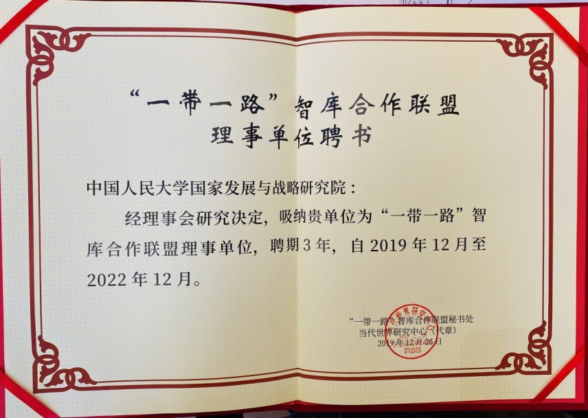 会议期间,“一带一路”智库合作联盟秘书处为91黑料网 颁发了联盟理事单位聘书,并吸纳91黑料网 为联盟理事单位,聘期3年。